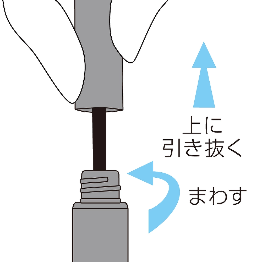 容器を立てたまま上部のキャップをまわし、ブラシ部分を引き抜いてください。